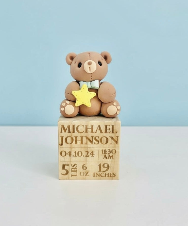 This unique and adorable teddy bear keepsake is the perfect newborn gift, it comes with all the birth stats and will be cherished for a lifetime.